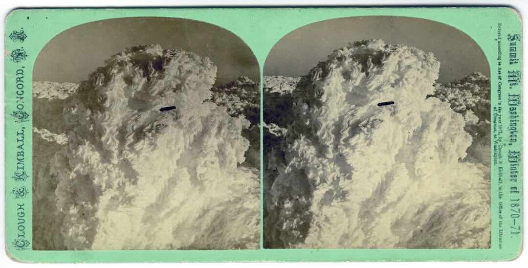 This stereoscopic image was captured c.1870 during a meteorological expedition at New Hampshire’s Mount Washington.