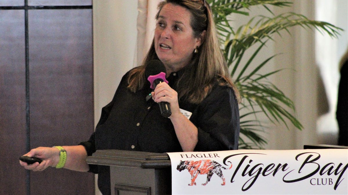 Jamie Foster, the assistant director of the Astraeus Space Institute at the University of Florida, spoke at the Flagler Tiger Bay Club luncheon.